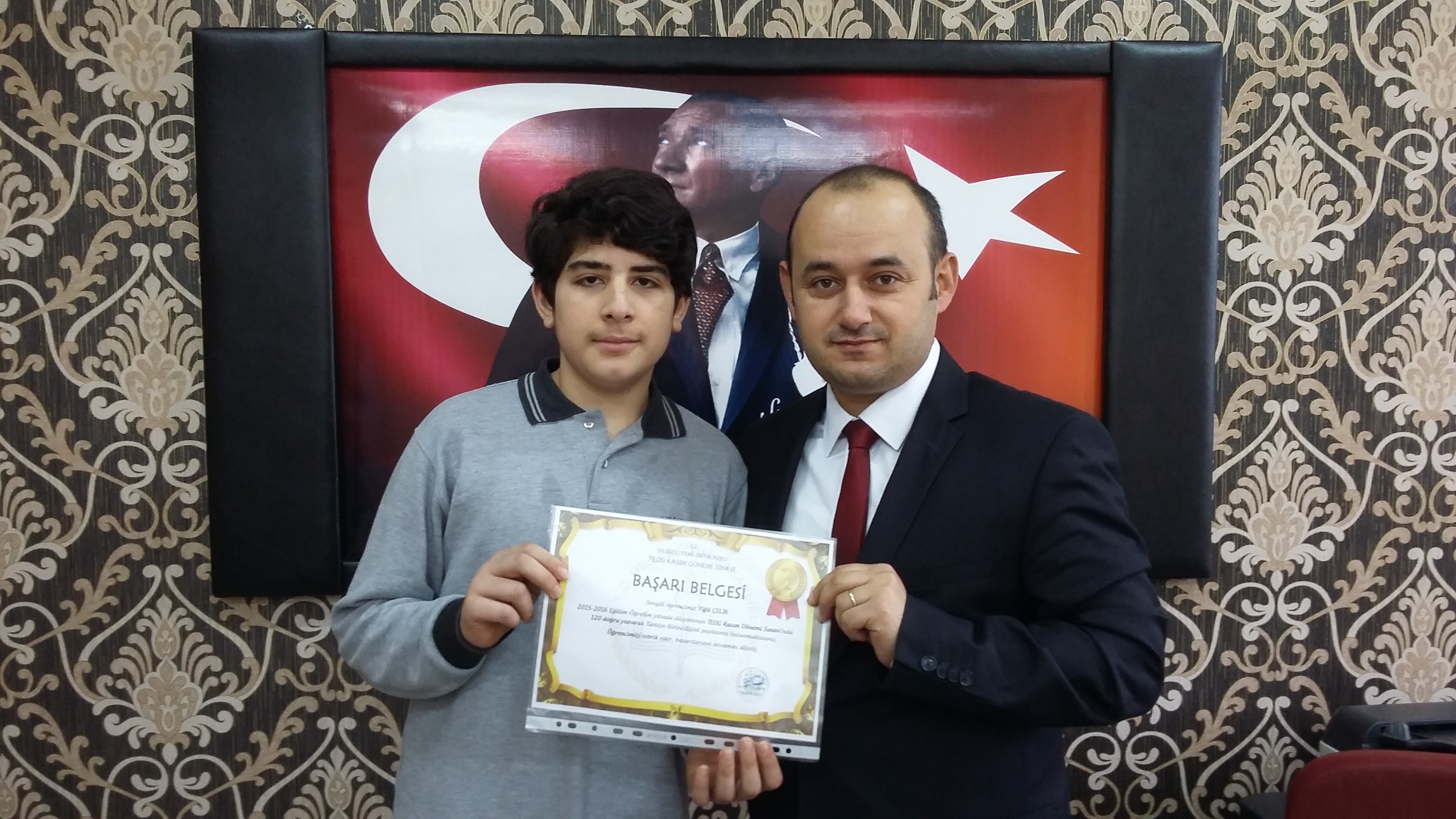 İlçemiz Yıldızlı TOKİ Ortaokulu 8. Sınıf öğrencisi Yiğit ÇELİK 1. dönem TEOG Sınavları sonucunda 120 sorunun hepsini doğru cevaplayarak büyük bir başarıya imza attı.