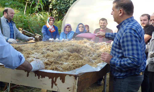 Kursiyerlere verilen teorik eğitimin ardından Akçaabat Darıca Mahallesindeki Çifçi Emine Bayram’a ait mantar eğitim uygulama serasında mantar uygulamalı eğitimi yapılar mantar miseli ekimi yapıldı.