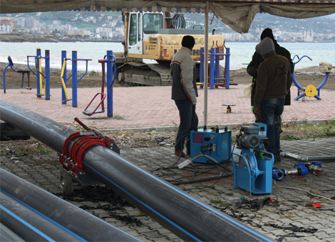 Akçaabat belediyesi tarafından ihale dilerek müteahhit firmaya yaptırılan kanalizasyon atık suları aktaracak derin deşarj çalışmaları yaylacık sahil kesimi elif un fabrikası civarında devam ediyor.