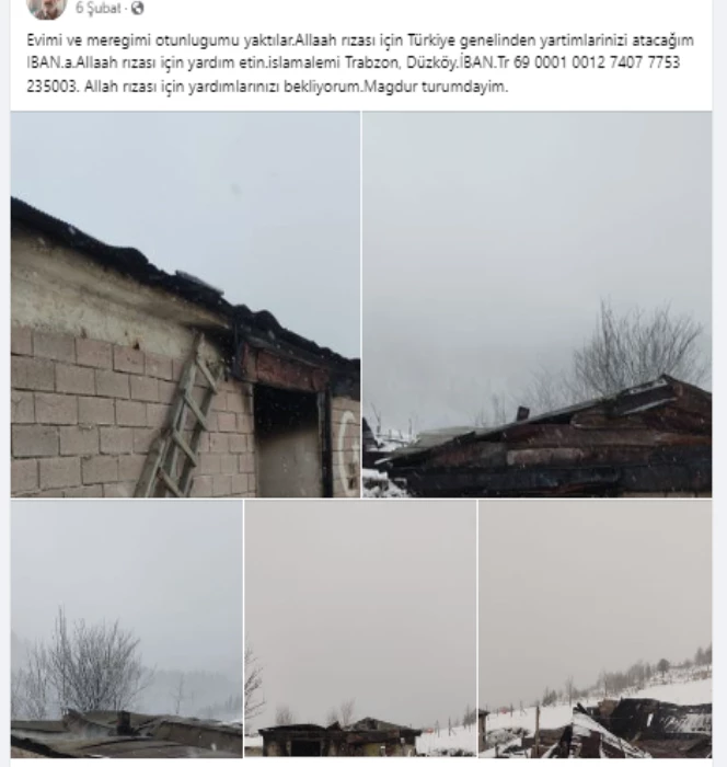 H.K.'nın, geçtiğimiz aylarda evinin ve mera alanının bir yangın sonucu zarar gördüğü ve bu sebeple evi ve mera için sosyal medya hesabı üzerinden yardım kampanyası başlattığı öğrenildi.