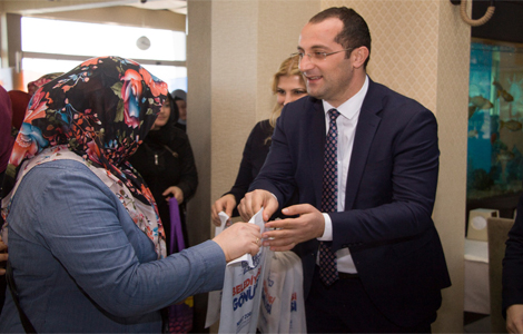 Toplantıda, Cumhur İttifakı Akçaabat Belediye Başkan Adayı Ekim kendisine eşlik eden eşiyle birlikte katılımcılara hediyeler takdim ederek günlerini kutladı.