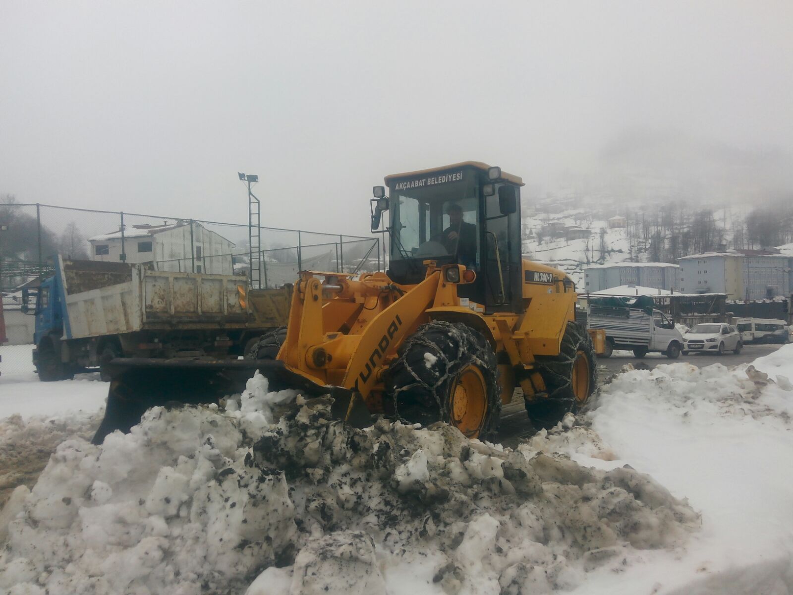 Bölgemizde geçen hafta yağan yoğun kar yağışı nedeniyle, Akçaabat Belediyesi bir kepçe ile personeli Hayrat ilçesine göndererek karla mücadele çalışmasına katkıda bulundu.