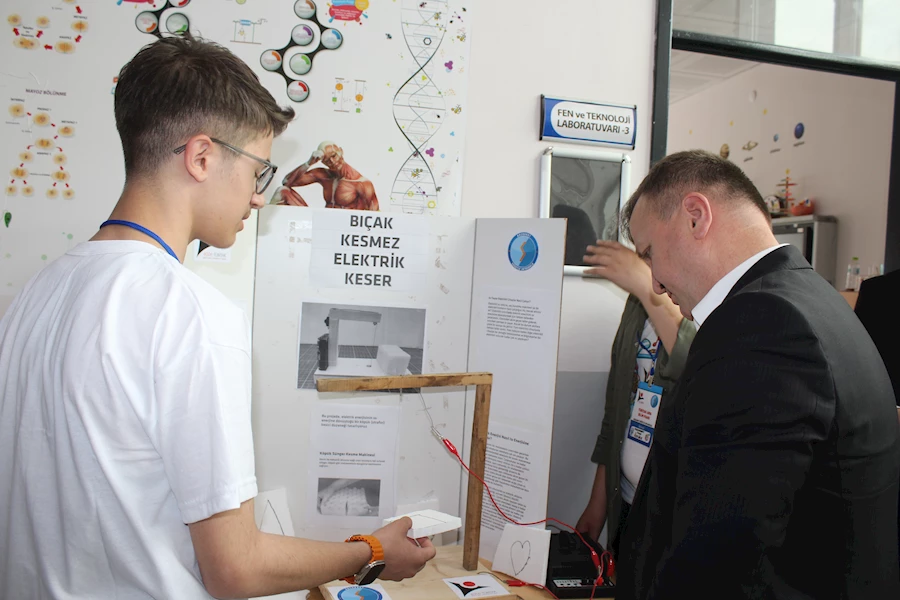 Törende bir konuşma yapan Okul Müdürü Koşman Bulut, öğretmen ve öğrencilerinin gayretli çalışmaları ile ortaya çıkan projelerin bilim ve teknikte yeni buluşlara kapı aralamasını temenni etti. Müdür Bulut, “Bu fuarda çeşitli çalışmalarını sergileyen çocuklarımız ileride ülke yararına olacak büyük buluşların mimarı olabilirler. Her biri birer bilim adamı olarak ülkemizi çağdaş uygarlık seviyesine ulaştırabilirler. Her birini ve onlara refakat eden öğretmen arkadaşlarımı tebrik ediyorum.” dedi.