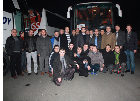 Ankaraya Gidecek Olan Otobüslerin HareketindenÖnce İlçe Başkanı A.Ziya Öztürk ve Yöneticiler Otobüsleri Tek Tek Gezerek Ankaraya Giden Gençlere Hitaben Kısa bir Konuşma Yaptı ve Hayılı Yolculuklar Diledi.