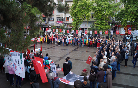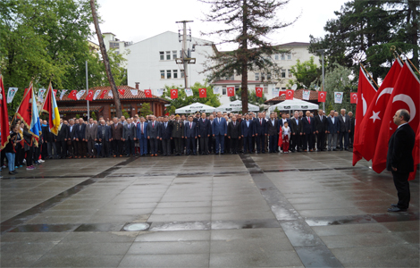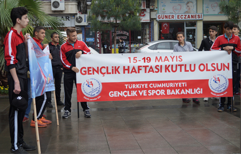 Gençlik yürüyüşü ile İnönü Caddesi'nde başlayan törenler, Atatürk Parkı'nda Atatürk Anıtına çelenk sunulması ve saygı duruşu ve ardından okunan istiklal marşı ile devam edildi.