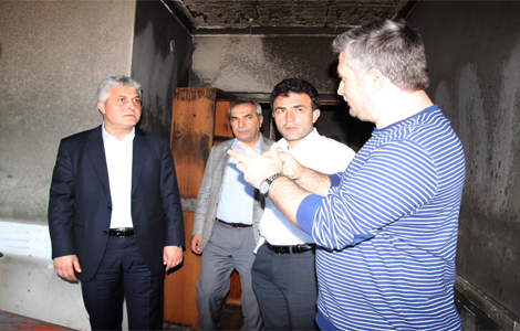 Adnan Günnar,yanan parti binasında incelemede bulundu.