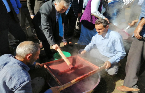 Gıda Tarım ve Hayvancılık İl Müdürü Cahit Gülbay ,her yıl eylül ekim ayları geldiğinde ilimizde de yetişen kokulu üzümü sofralık olarak tüketmenin yanında pekmez olarak da tüketimi uzun yıllardır süregelen bir durum Ancak pekmez yapımı öncesindeki hazırlıklar ve pişirilirken dikkat edilmesi gereken konular büyük hassasiyet istiyor .Ürünün gıda kanunu kapsamında hijyenik olarak üretilmesi büyük önem taşıyor. Ayrıca bölgemizde yetişen üzümün kabuğunda diğer bölgelere göre kanser önleyici madde daha yoğun buda bir mucize. Bu yörede üretilen pekmezlerde bu nedenle büyük ilgi görüyor ailelerimize de ekonomik olarak katkı sağlıyor ,bizlerde elimizden geldiğince çiftçilerimize destek olmaya çalışıyoruz dedi.