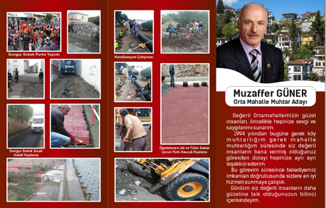 Anahtar Kelimeler: ORTA, MAHALLE, MUHTARI, MUZAFFER, GÜNER, YENİDEN, ADAY, OLDUĞUNU, AÇIKLADI