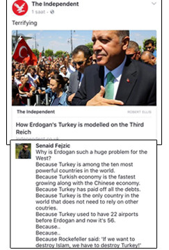 “President Erdogan may be democratically elected, but his Turkey is modelled on the Third Reich” başlıklı haberi ile Erdoğan’ın Türkiye’sini Almanya’nın Nazisine benzetmiş...