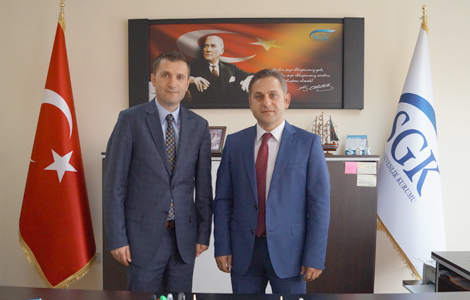 SGK il müdürü Aydın Gedikli Akçaabat'ı Ziyareti Kapsamında Sgk Akçaabat İlçe Müdürü Kahraman Dereceyi ve Akçaabat Muhtarlar Derneği Başkanı Eyüp Gedilkliye bir ziyaret Gerçekleştirdi.