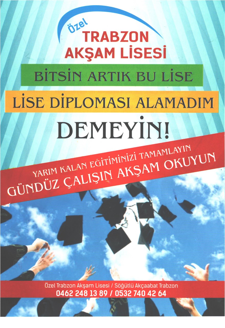 Karadeniz’de tek olan Özel Trabzon Akşam lisemiz 2008-2009 eğitim öğretim yılından itibaren hizmete devam etmektedir. Öğrenci kontenjanı 140 olup 15 öğretmen ve idarecisiyle eğitime yön vermektedir.Her bir sınıfımız 20 öğrenci okuyacak şekilde dizayn edilmiştir dedi.