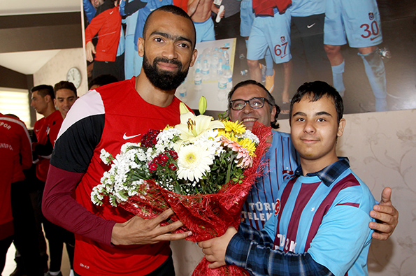 Gezide özel eğitim sınıfları adına Trabzonsporlu futbolculara çiçek takdim edildi. Trabzonsporlu futbolcularla bol bol fotoğraf çektiren öğrencilerin çok neşeli oldukları gözlendi.