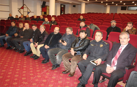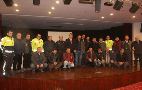 Akçaabat Erol Günaydın sanat merkezinde yapılan toplantıda, Akçaabat Emniyet müdürü Fahrettin Sadullahoğlu , görsel bir çalışmayla seminere katılanlara trafik konusunda bilgi verdi.