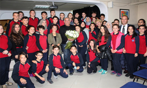 Bağlama sanatçısı Okyay Kösegil daha sonra öğrencilere mini bir THM konseri verdi ve hatıra fotoğrafı çektirdi.