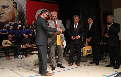 Konser sonunda Doğu Karadeniz Belediyeler Birliği Genel Sekreteri Mehmet Şentürk Başkan Mete Memiş’e bir takım hediyeler takdim ederken Memiş’te Şentürk’e plaket takdim etti.