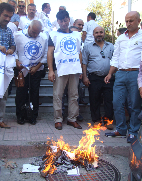 Türk eğitim sen şube başkanı Coşkun Dilber yaptığı açıklamada şunları söyledi. “ Bugün Türkiye cumhuriyetinde Milli Eğitim Bakanlığında hukuk cinayeti işlenmektedir.