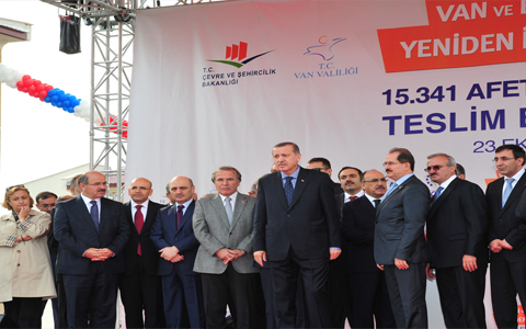 Başbakan Erdoğan, Erciş depreminin ardından TOKİ tarafından inşa edilen afet konutlarının anahtar teslim ve sosyal tesislerin açılış törenine katıldı.