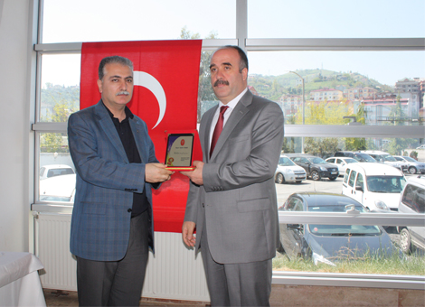 Etkinlikte mesleki tanıtımda etkin rol oynayan Artvin Borçka Belediye Başkanı Yıldırım demir’e Oda Başkanı Sebahattin Yazıcı tarafından bir plaket sunuldu.