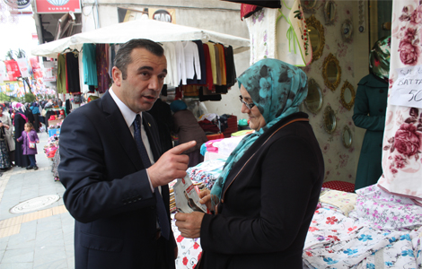 Aydın, seçim çalışmaları kapsamında Akçaabat ilçesinde salı pazarı esnafını gezeren alışveriş yapan vatandaşlarla sohbet etti.