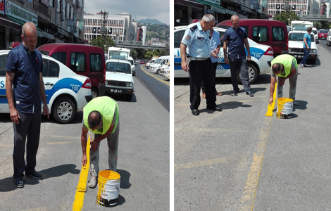 Akçaabat şoförler odası başkanı Ali Şentürk “ Yaklaşık 300 metrelik yolun her iki yanına çizilen çizgilere şoför esnafımızın uymalarını istiyoruz.