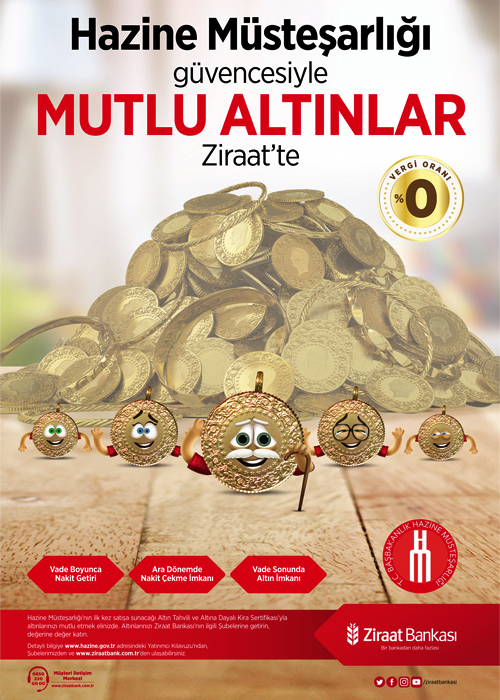 Ziraat bankası Gülbaharhatun Mahallesi Şubesi’nin 16-18 Ekim tarihlerinde, Trabzon Şubesi’nin de 23-27 Ekim tarihlerinde gerçekleştireceği Altın Tahvili ve Altına Dayalı Kira Sertifikası toplama işlemlerinde 22 ve 24 ayar altınlar kabul edilecek.